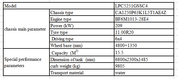 專用性能參數(shù) | 有效容積(立方米) | 15.5 | |